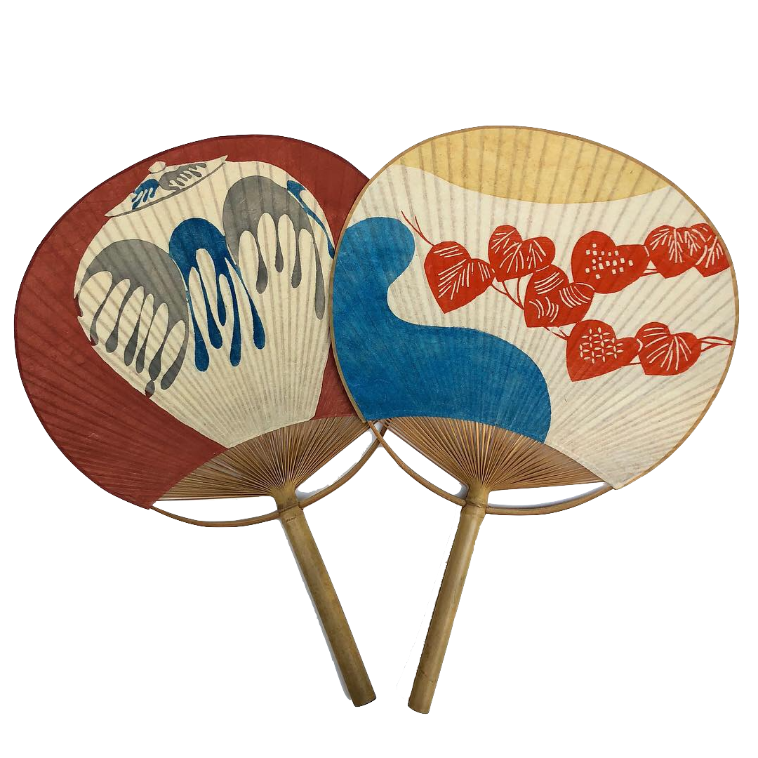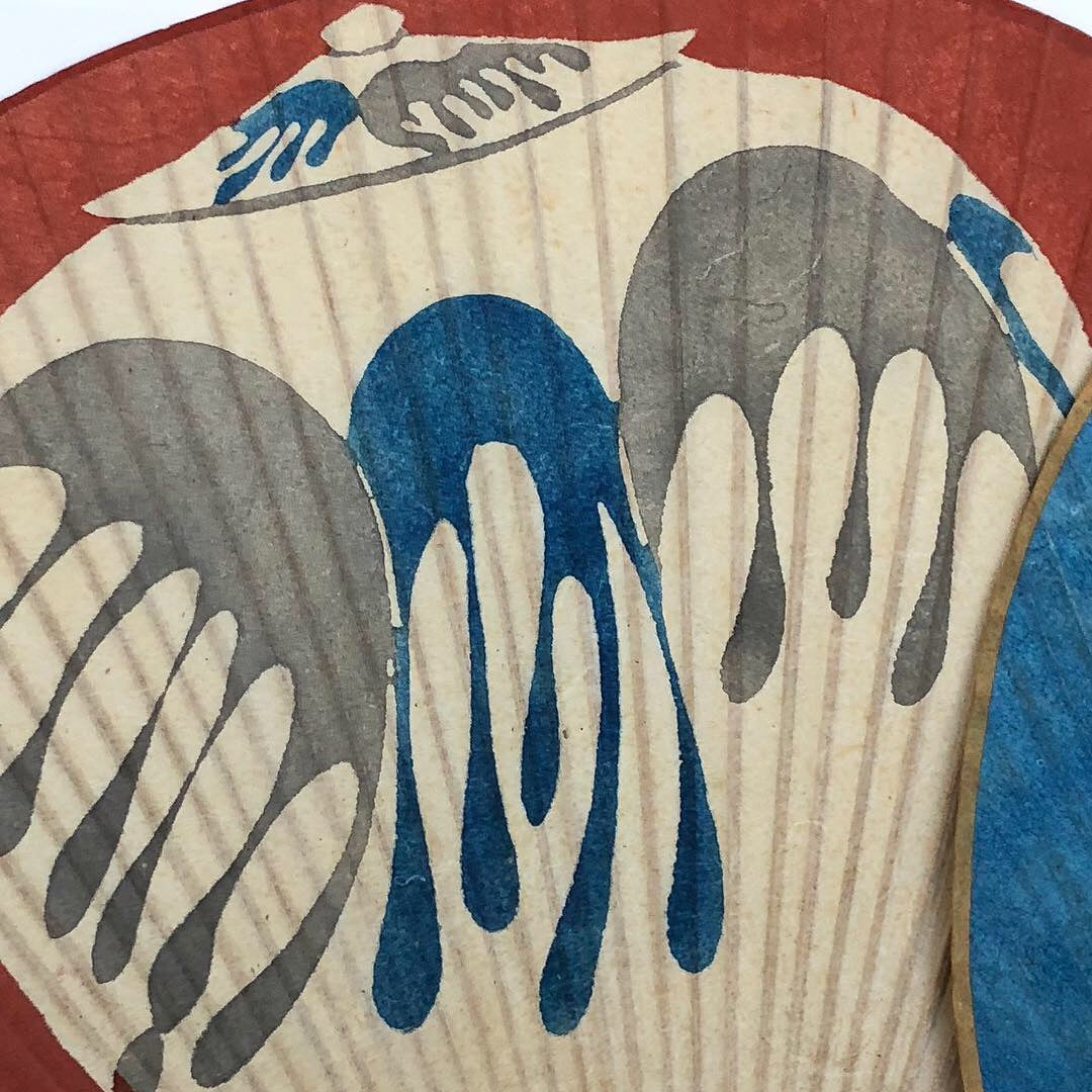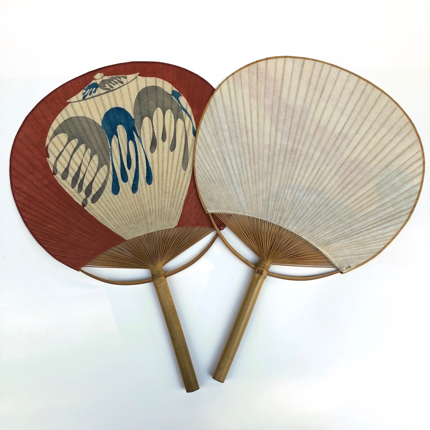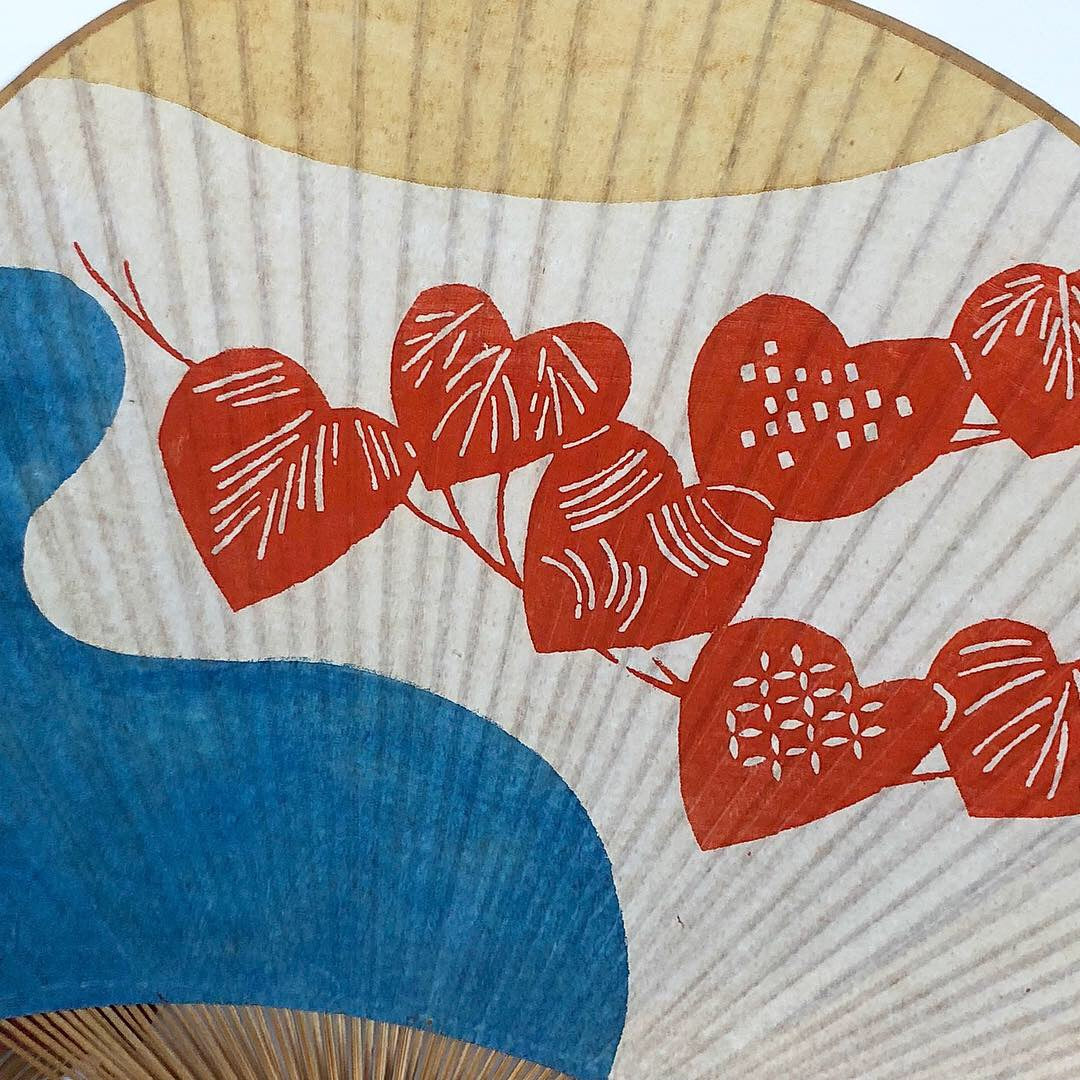 While the season for fanning my be over, I’d hang these vintage Japanese fans on the wall immediately to enjoy them as the gorgeous objects that they are all winter long—and to be reminded that summer will come again! These sorts of rigid paddle-shaped fans are called Uchiwa in Japanese; these are made of paper and bamboo, and I presume date from the 1950s or so. With their elegant graphics and terrific color palettes, they are really inspiring me add vintage Japanese fans to my ongoing collecting obsessions; I want to see a whole wall of them!