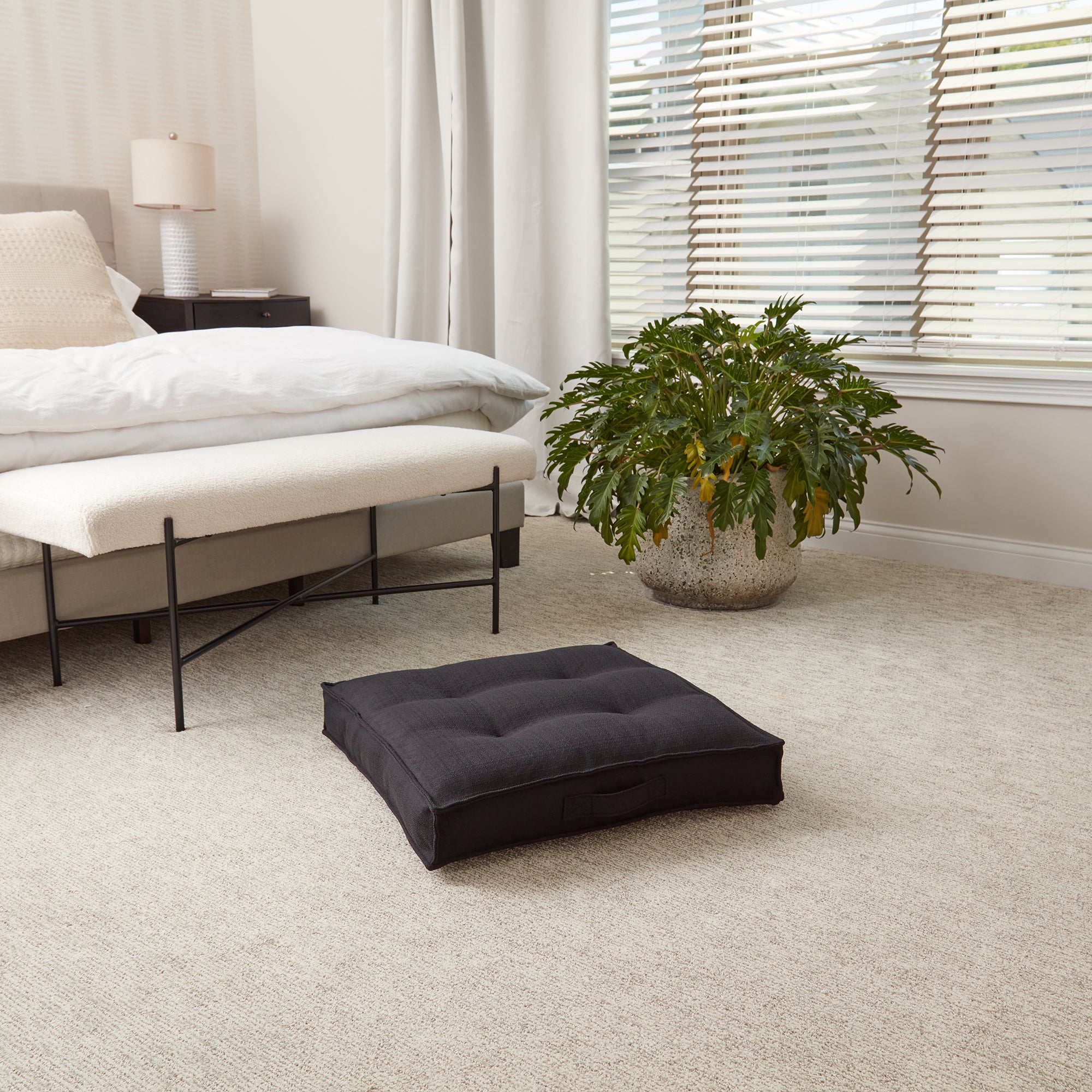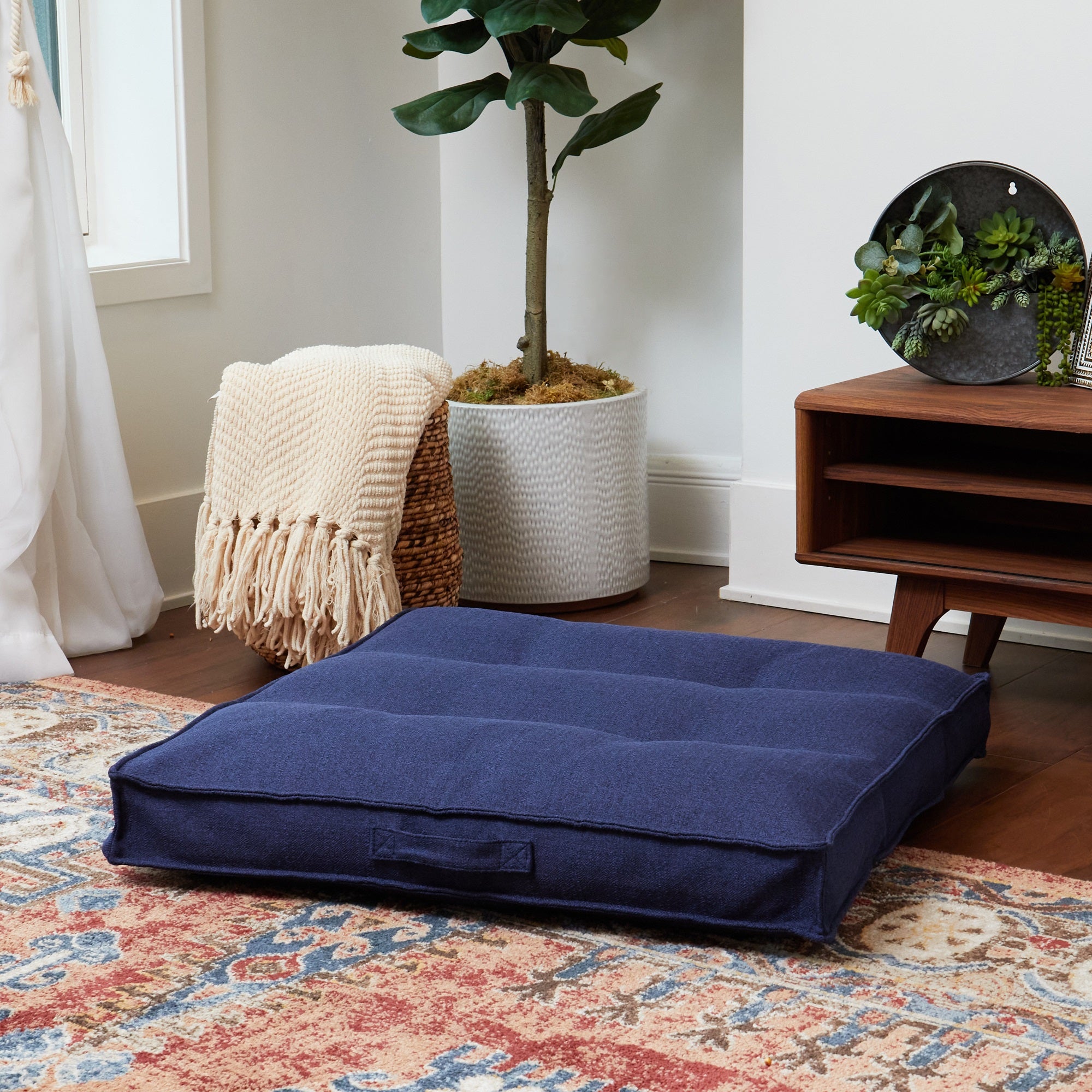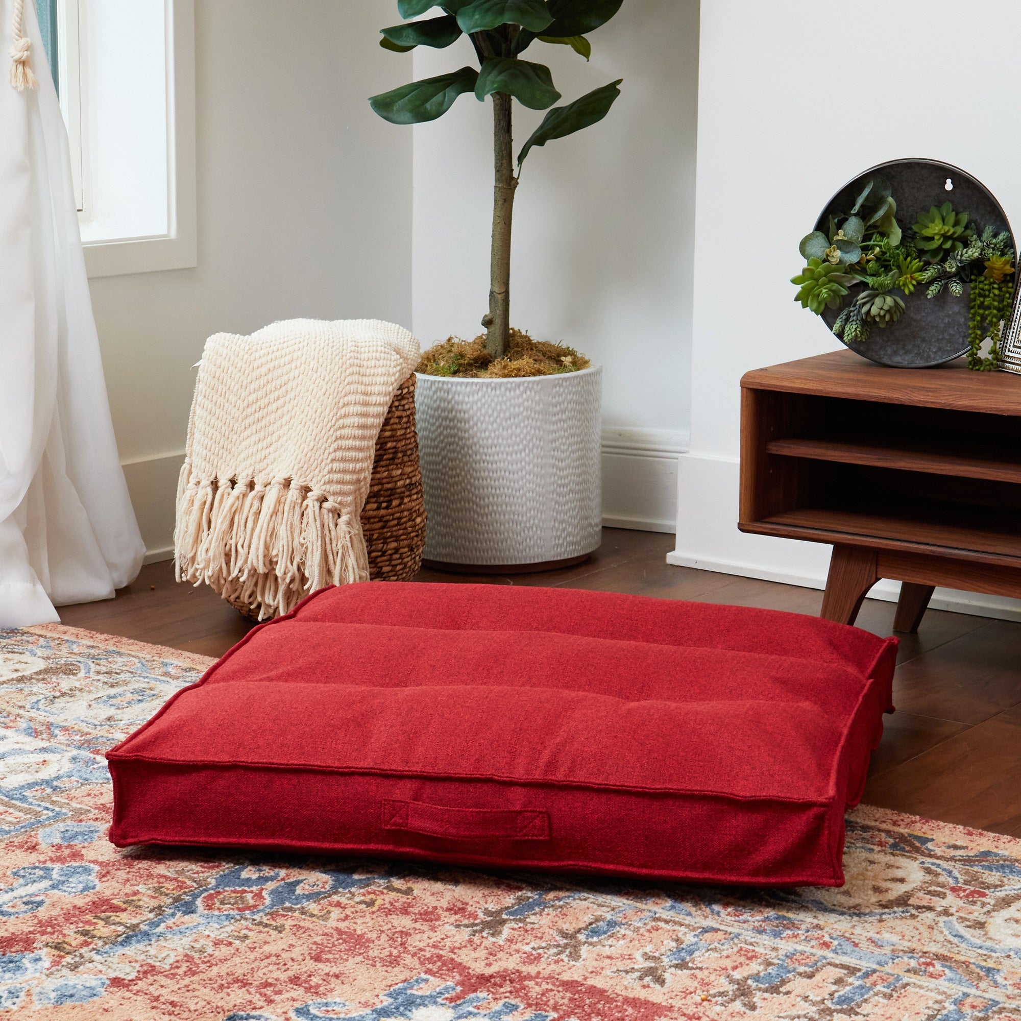 - A sewn in handle makes moving it a breeze