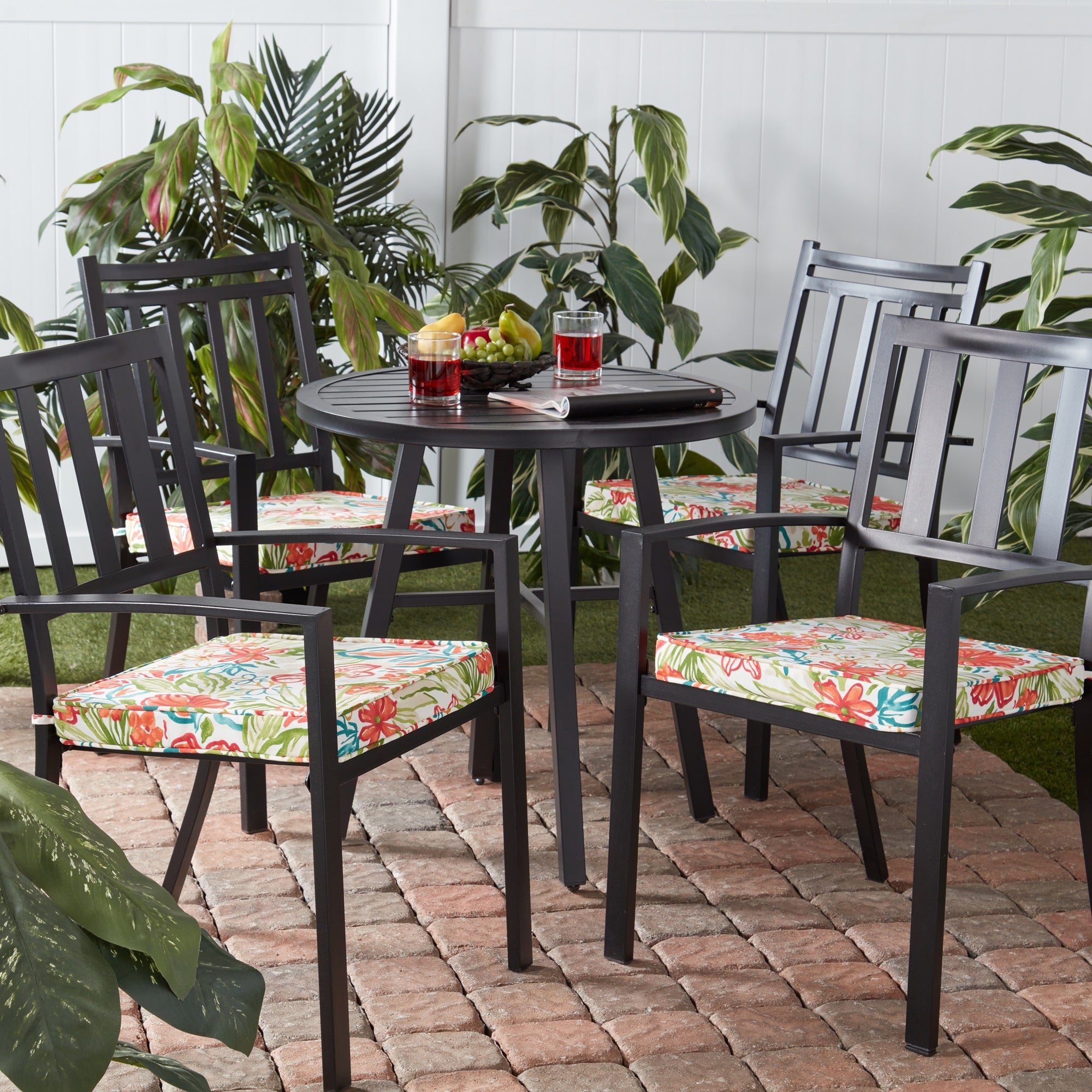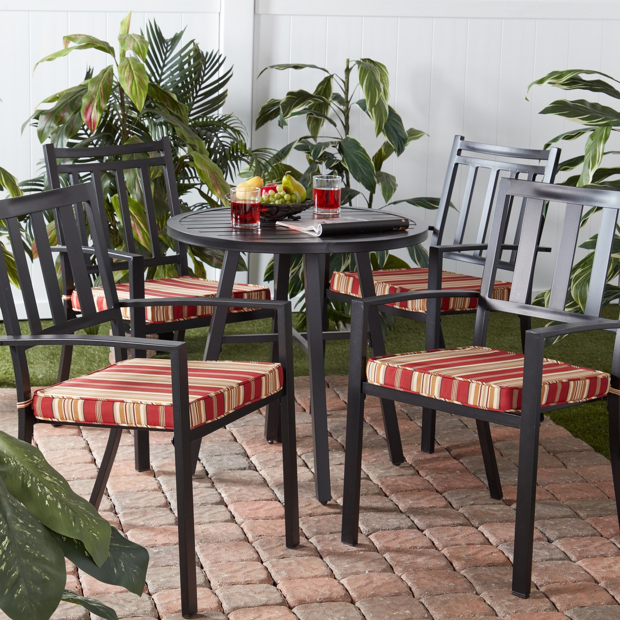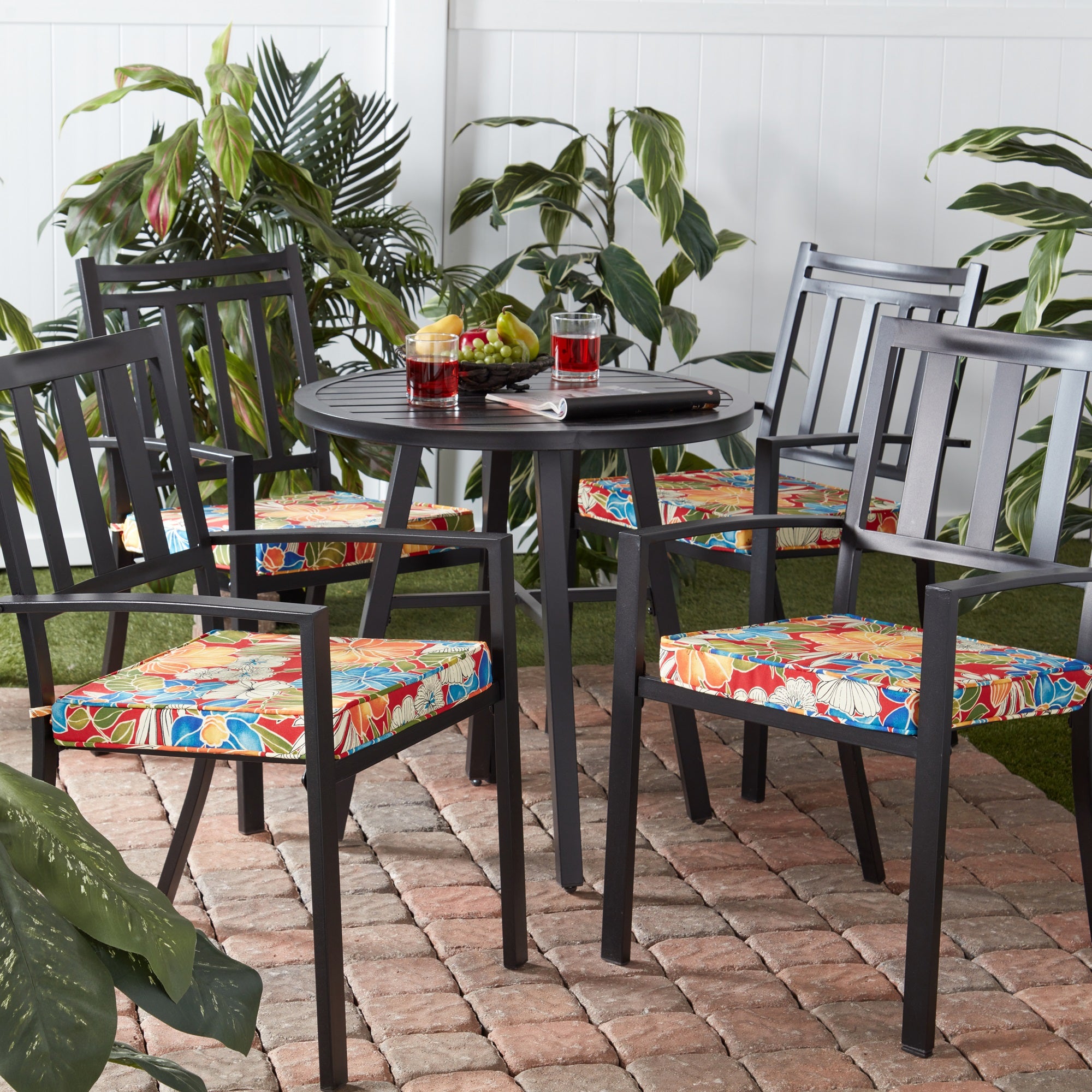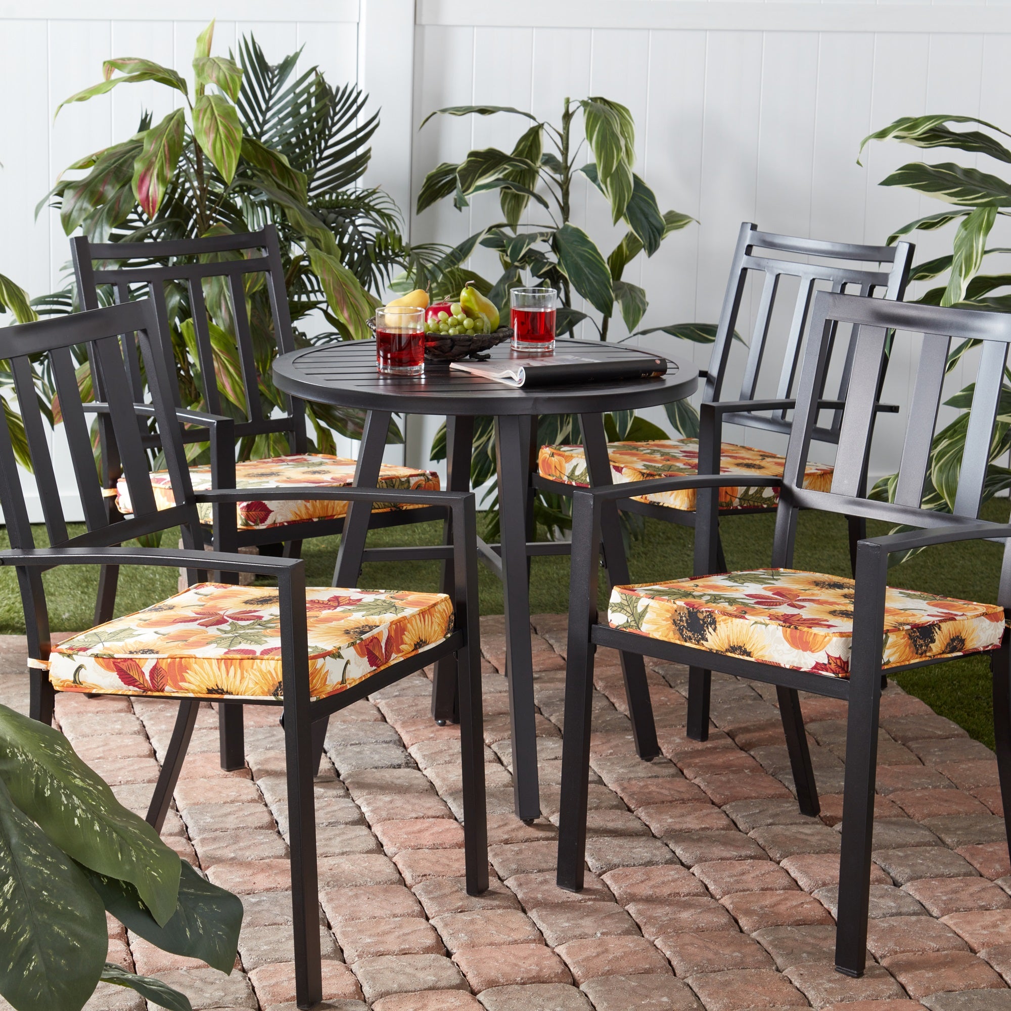 Add both comfort and style to your outdoor seating with this set of 4 square chair pads. A dense fiberfill insert gives this cushion a smooth finish, and eliminates any shifting for a more consistent comfort. The durable outdoor polyester fabric resists fading, repels water, stains and spills, and is available in a wide variety of colors and patterns. Use with other listed cushions and pillows for a coordinated look. To prolong the life of our cushions and keep them looking beautiful, we recommend storing them indoors or covered when not in use.