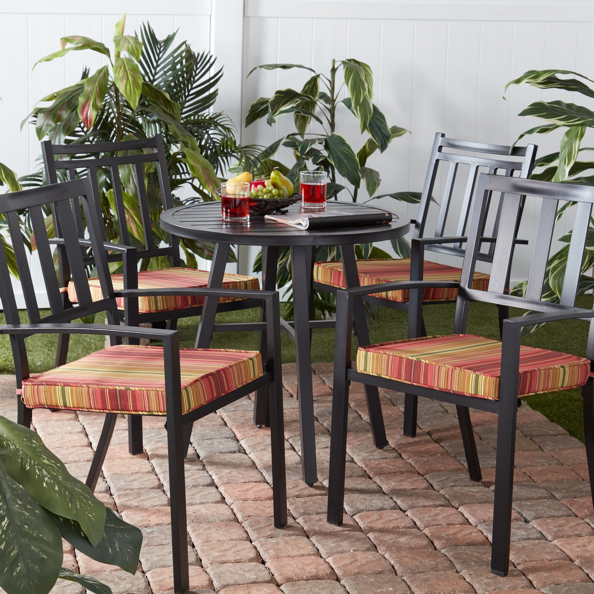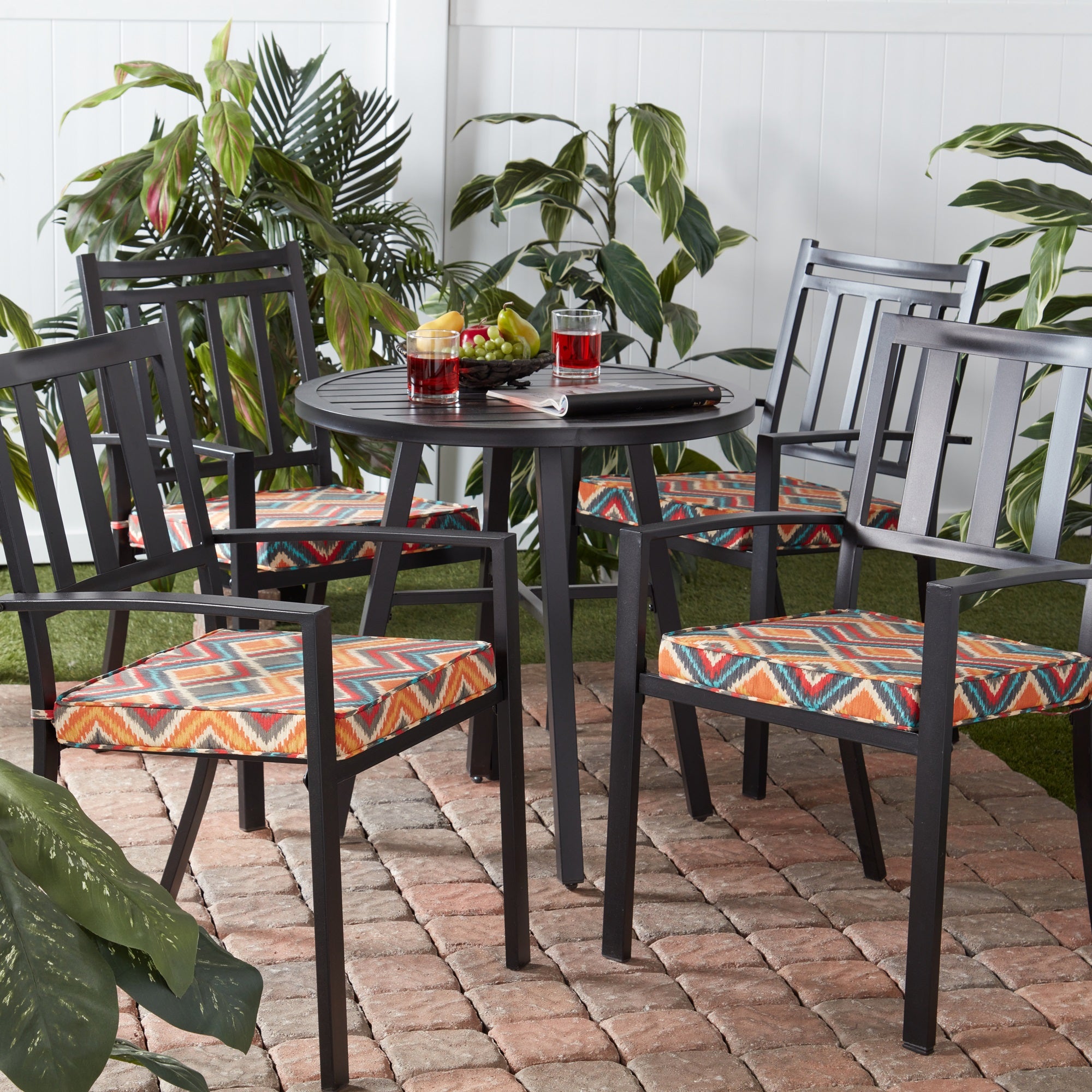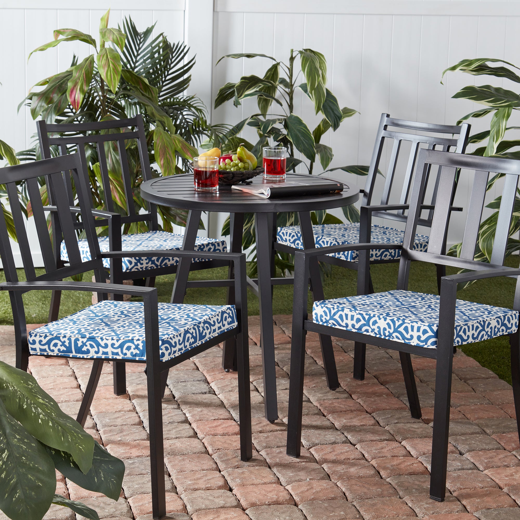 Add both comfort and style to your outdoor seating with this set of 4 square chair pads. A dense fiberfill insert gives this cushion a smooth finish, and eliminates any shifting for a more consistent comfort. The durable outdoor polyester fabric resists fading, repels water, stains and spills, and is available in a wide variety of colors and patterns. Use with other listed cushions and pillows for a coordinated look. To prolong the life of our cushions and keep them looking beautiful, we recommend storing them indoors or covered when not in use.