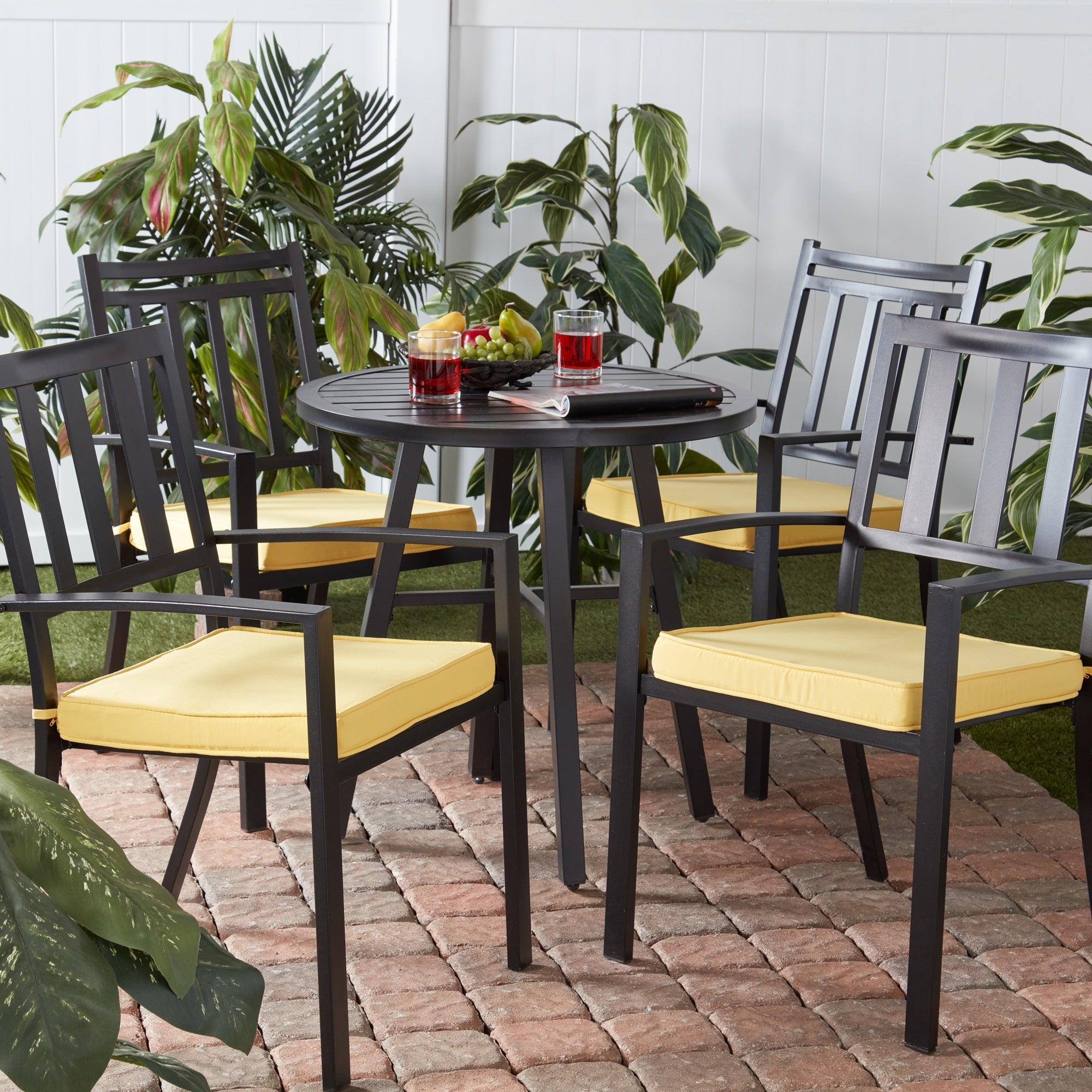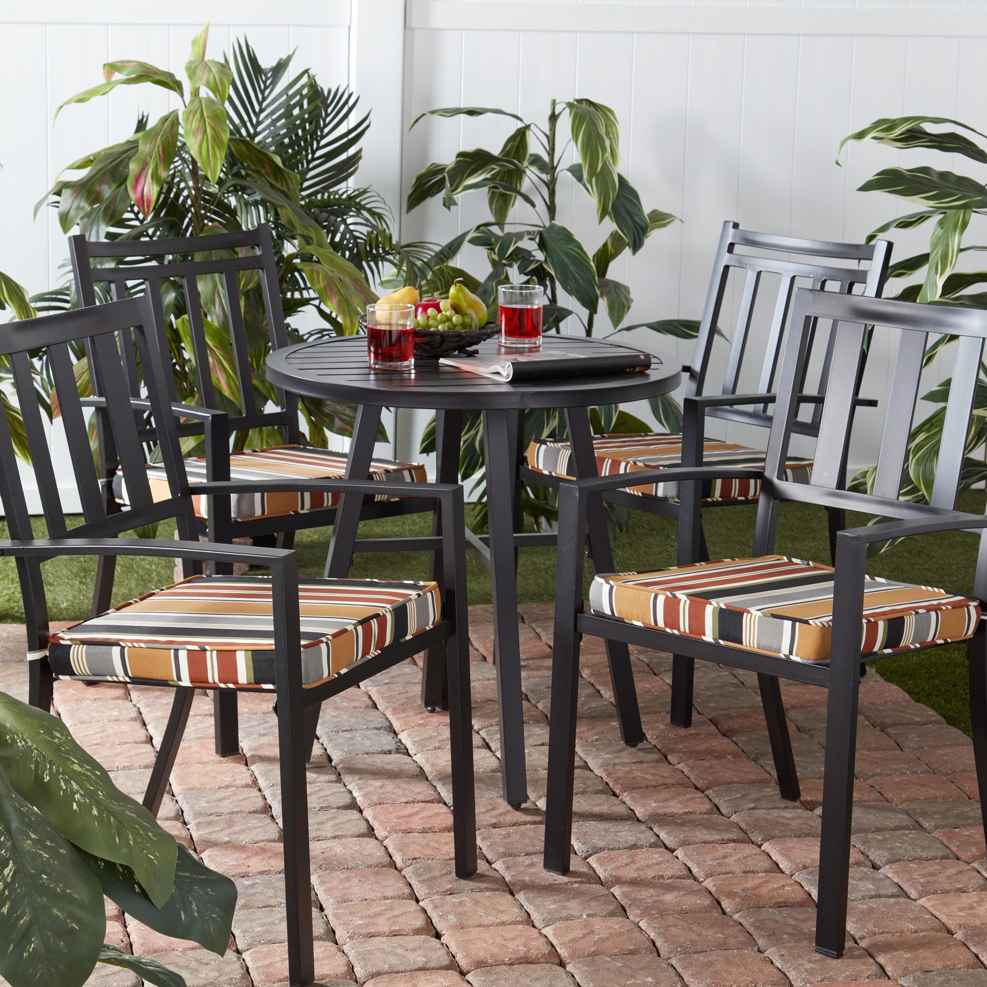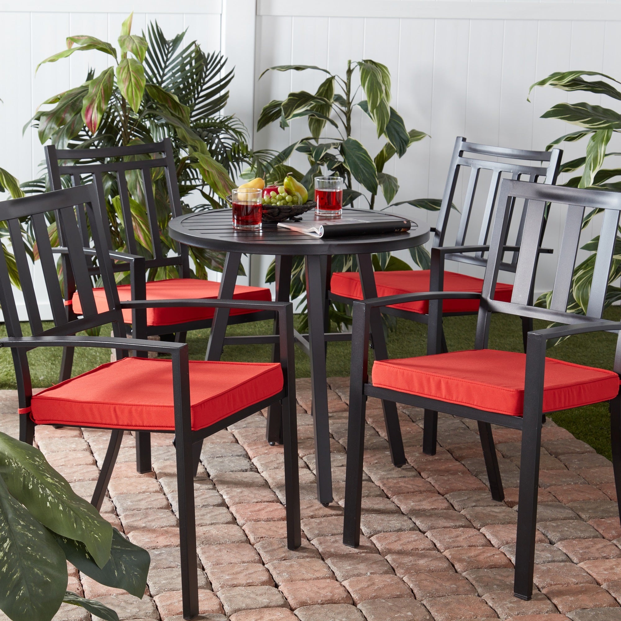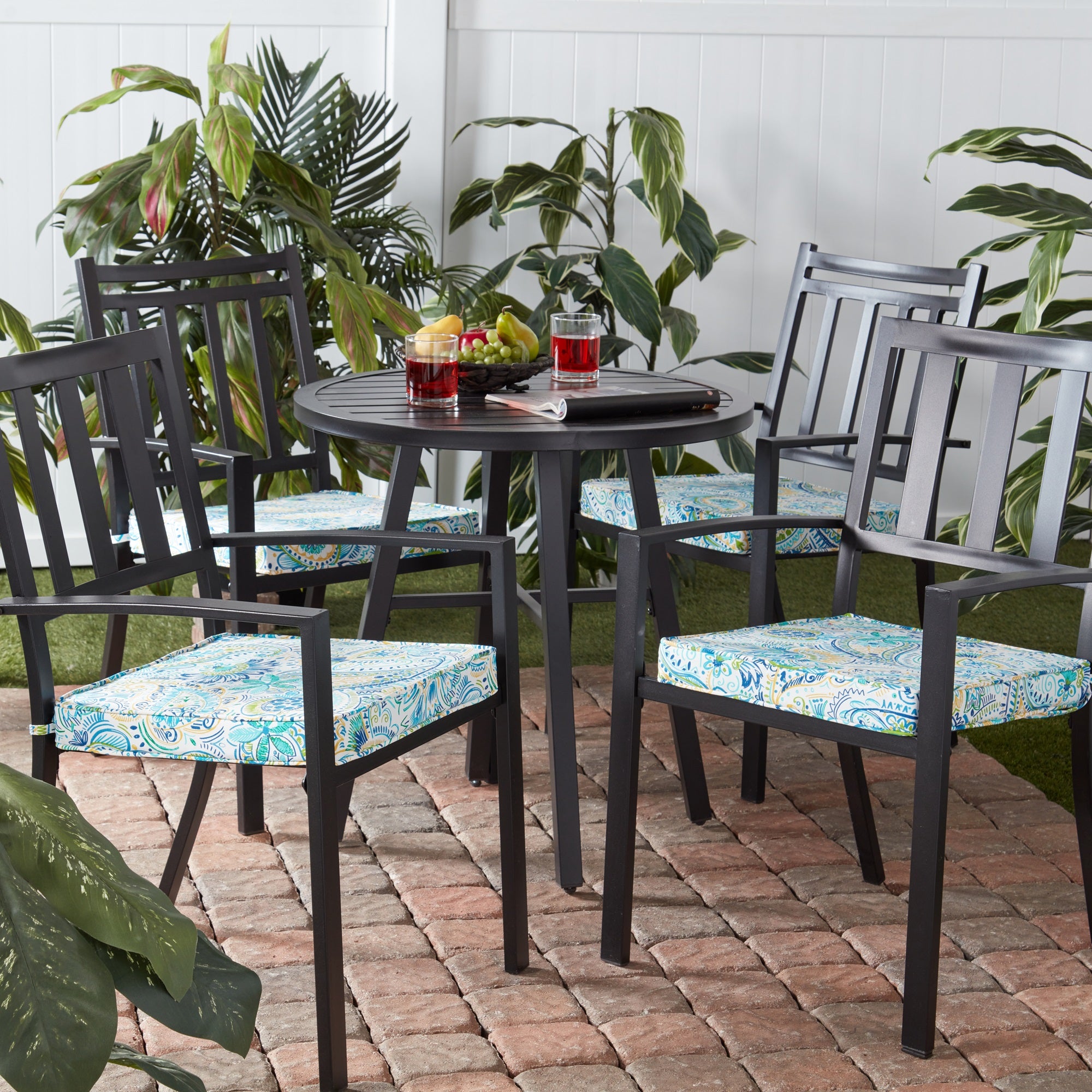 Add both comfort and style to your outdoor seating with this set of 4 square chair pads. A dense fiberfill insert gives this cushion a smooth finish, and eliminates any shifting for a more consistent comfort. The durable outdoor polyester fabric resists fading, repels water, stains and spills, and is available in a wide variety of colors and patterns. Use with other listed cushions and pillows for a coordinated look. To prolong the life of our cushions and keep them looking beautiful, we recommend storing them indoors or covered when not in use.