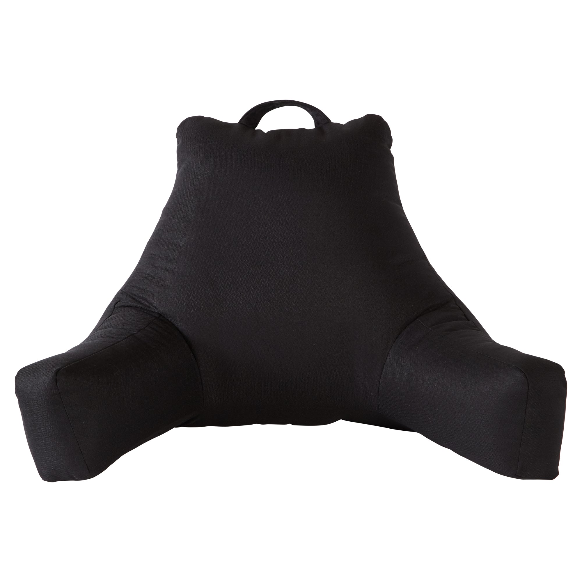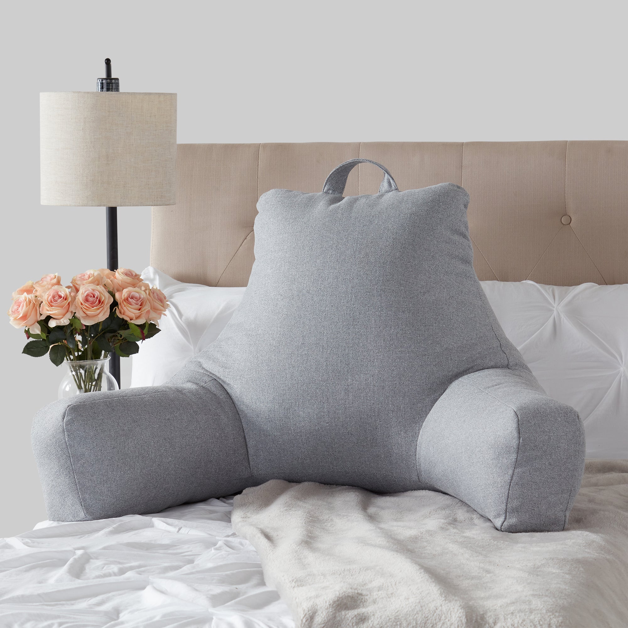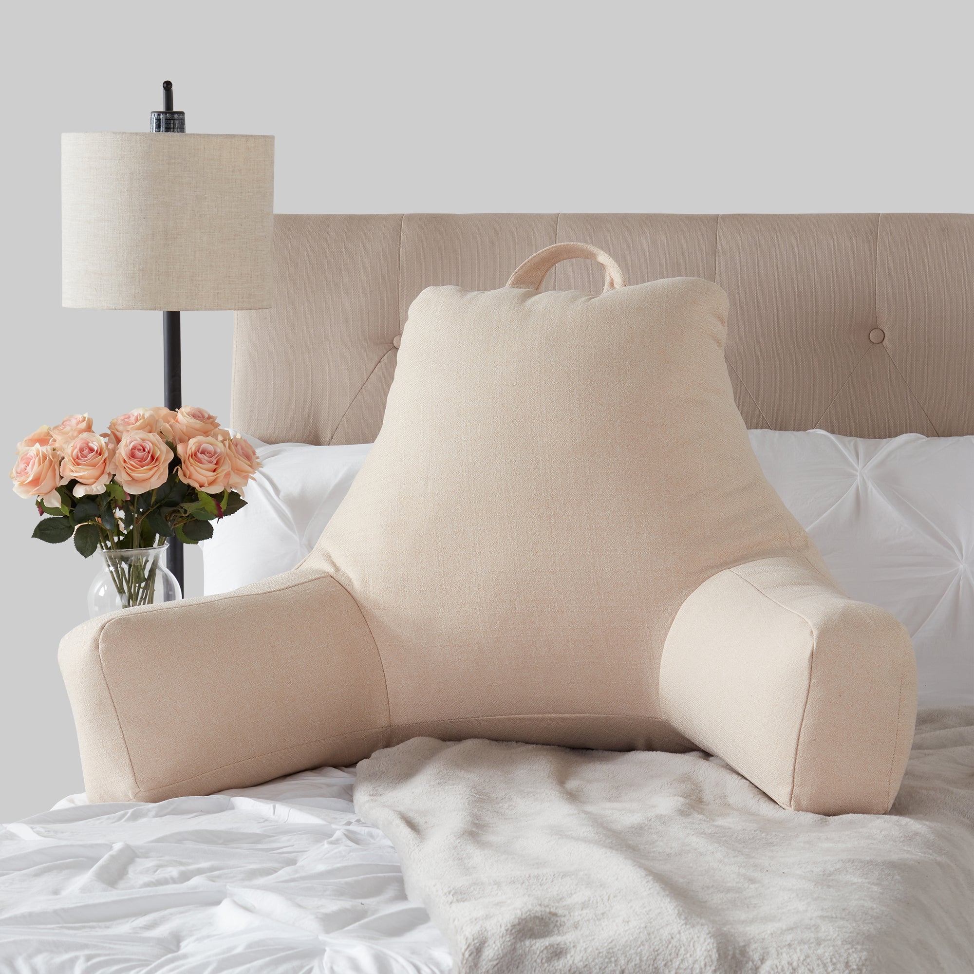 This extra large bed rest pillow is made from a soft polyester fabric featuring a basket weave detail for added texture. It is overstuffed with fiberfill for peak comfort and support. Ideal for lounging back support, this jumbo bed rest is large enough for most adults. A sewn in handle makes moving it a breeze. This item will come in a compressed state. Please allow 48 hours for the item to take full shape. Spot clean only.