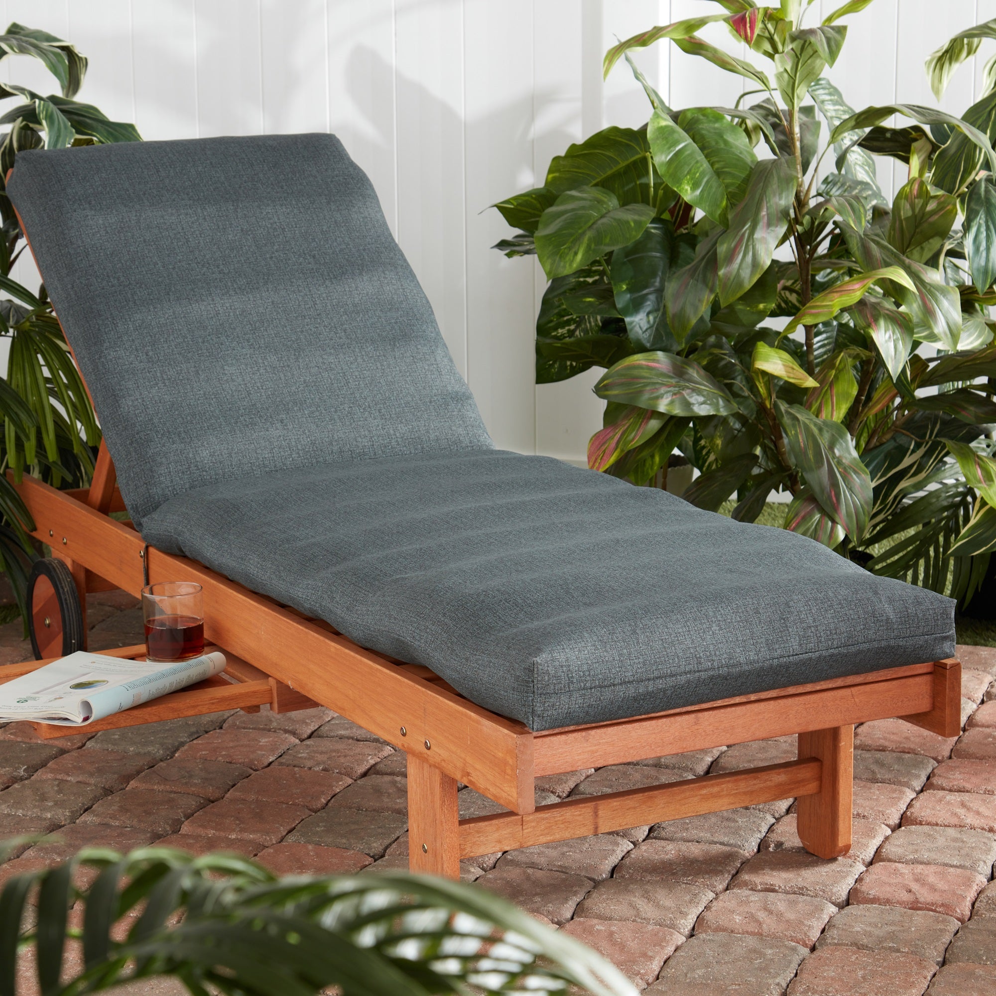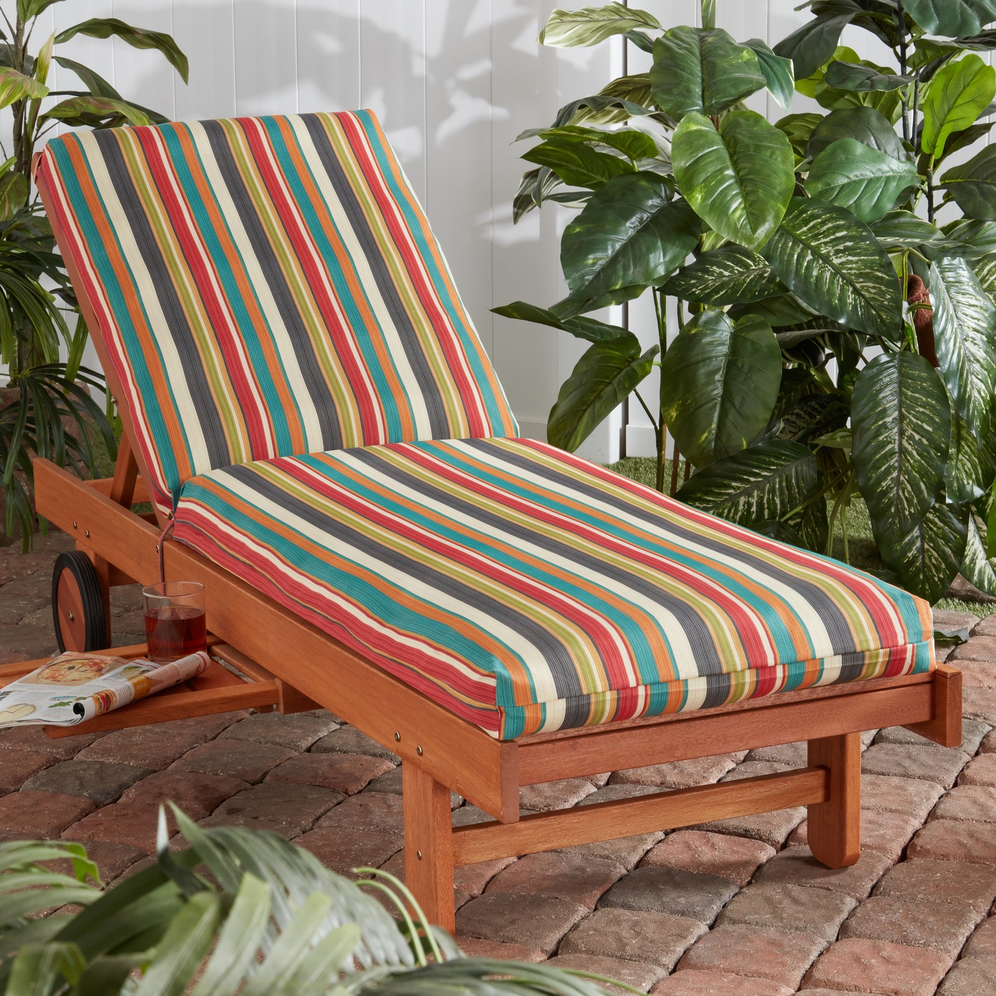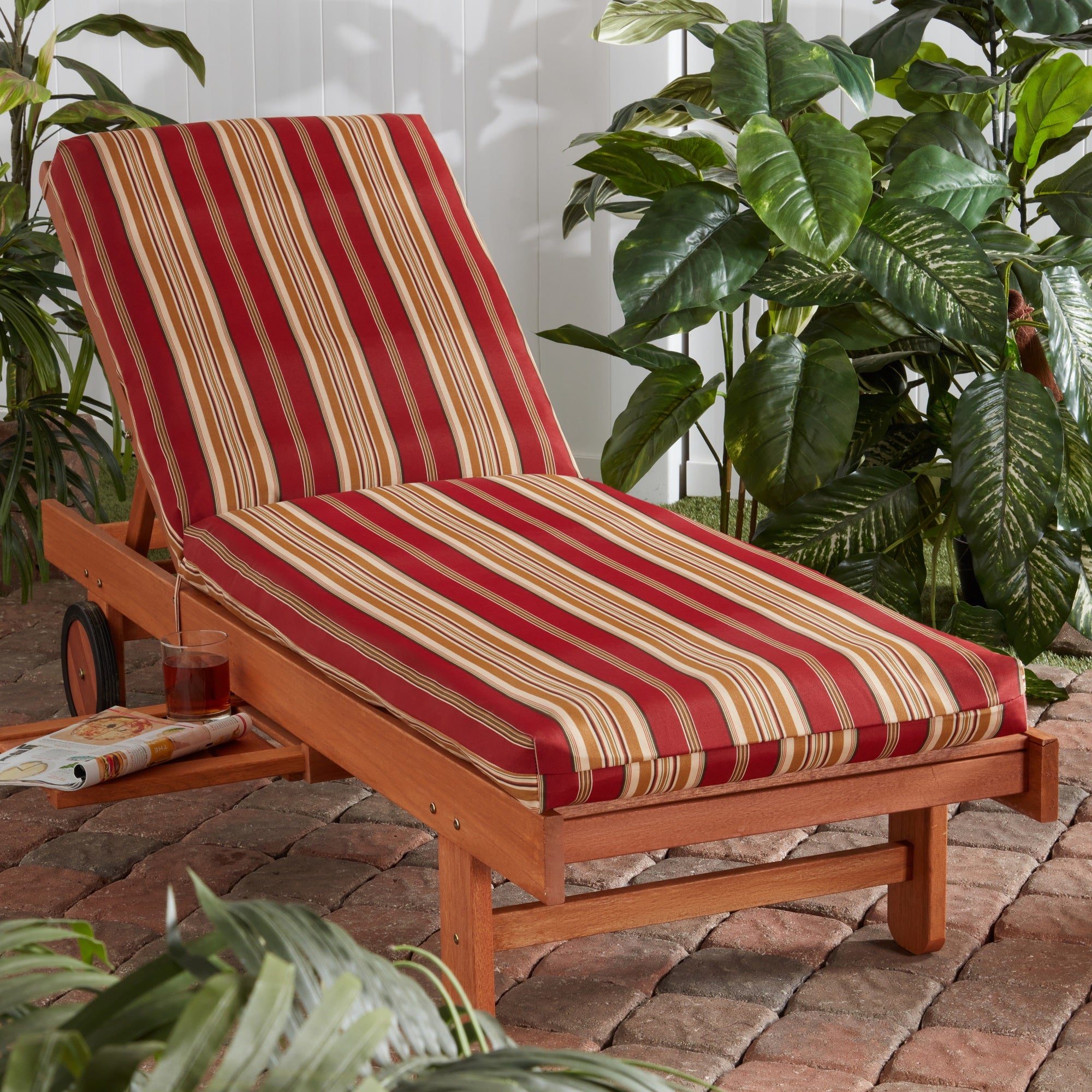 Relax in style with this new Outdoor Chaise Cushion featuring a smooth, single hinge design for a more contemporary look for your patio space. Long-lasting comfort is what you can expect from the channel insert design filled with soft, recycled poly-fiber. This durable outdoor polyester fabric resists fading, repels water, stains and spills, and is available in a wide variety of colors and patterns. To prolong the life of this cushion and keeping it looking beautiful, we recommend storing them indoors or covered when not in use.