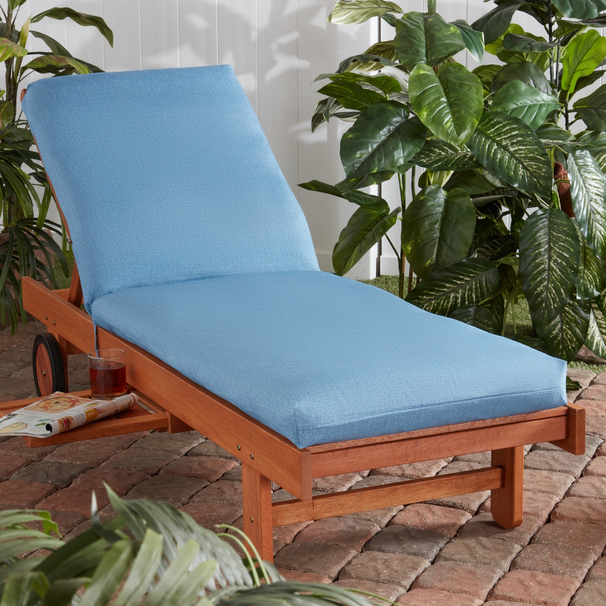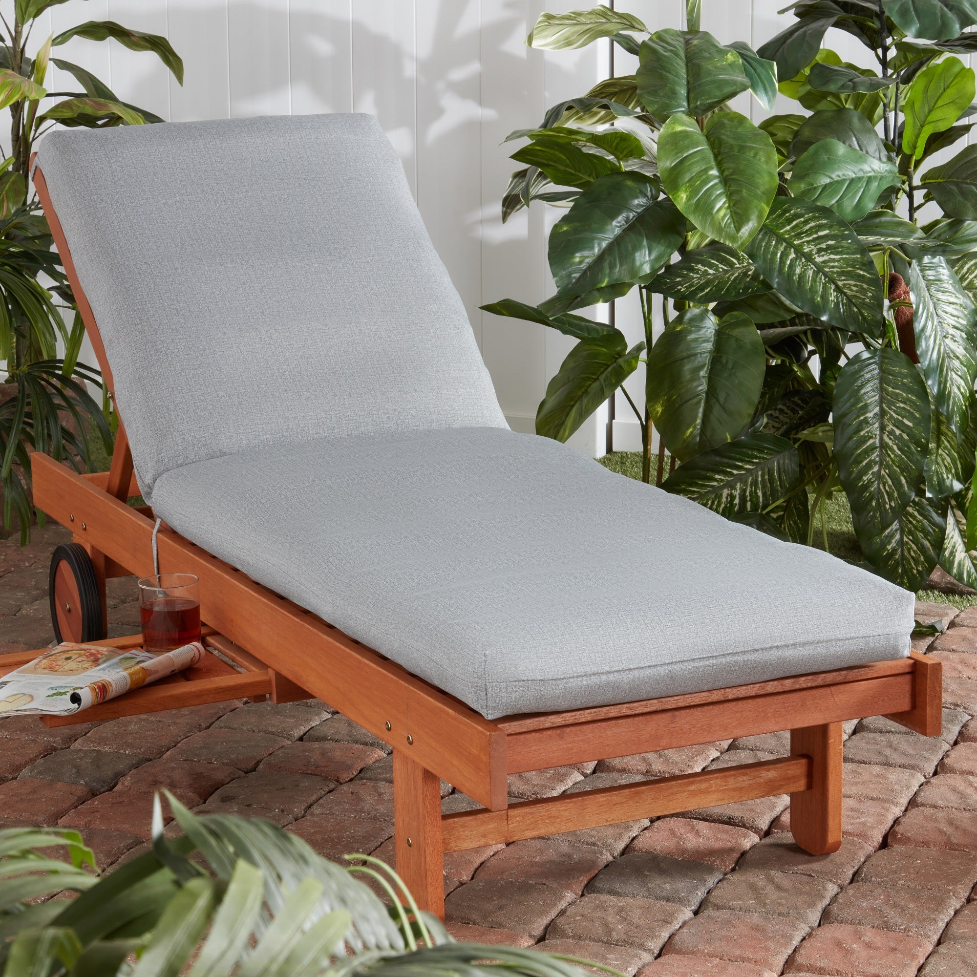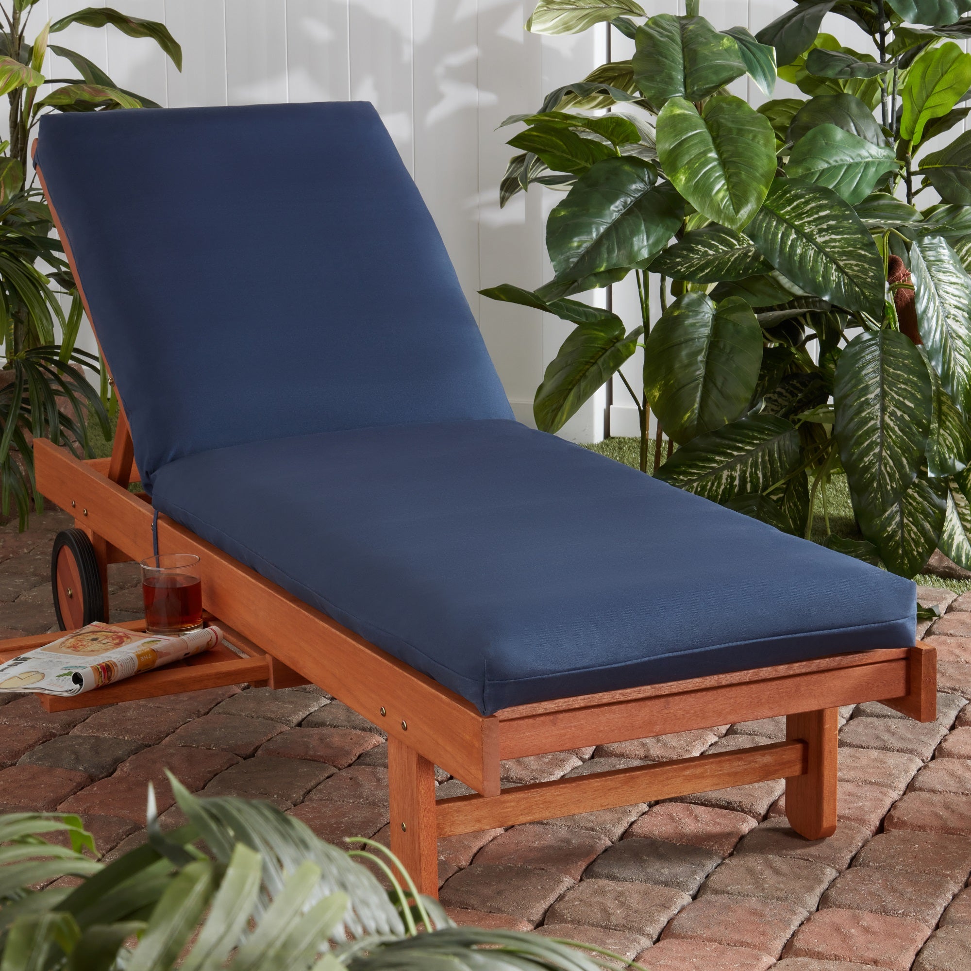 Relax in style with this new Outdoor Chaise Cushion featuring a smooth, single hinge design for a more contemporary look for your patio space. Long-lasting comfort is what you can expect from the channel insert design filled with soft, recycled poly-fiber. This durable outdoor polyester fabric resists fading, repels water, stains and spills, and is available in a wide variety of colors and patterns. To prolong the life of this cushion and keeping it looking beautiful, we recommend storing them indoors or covered when not in use.