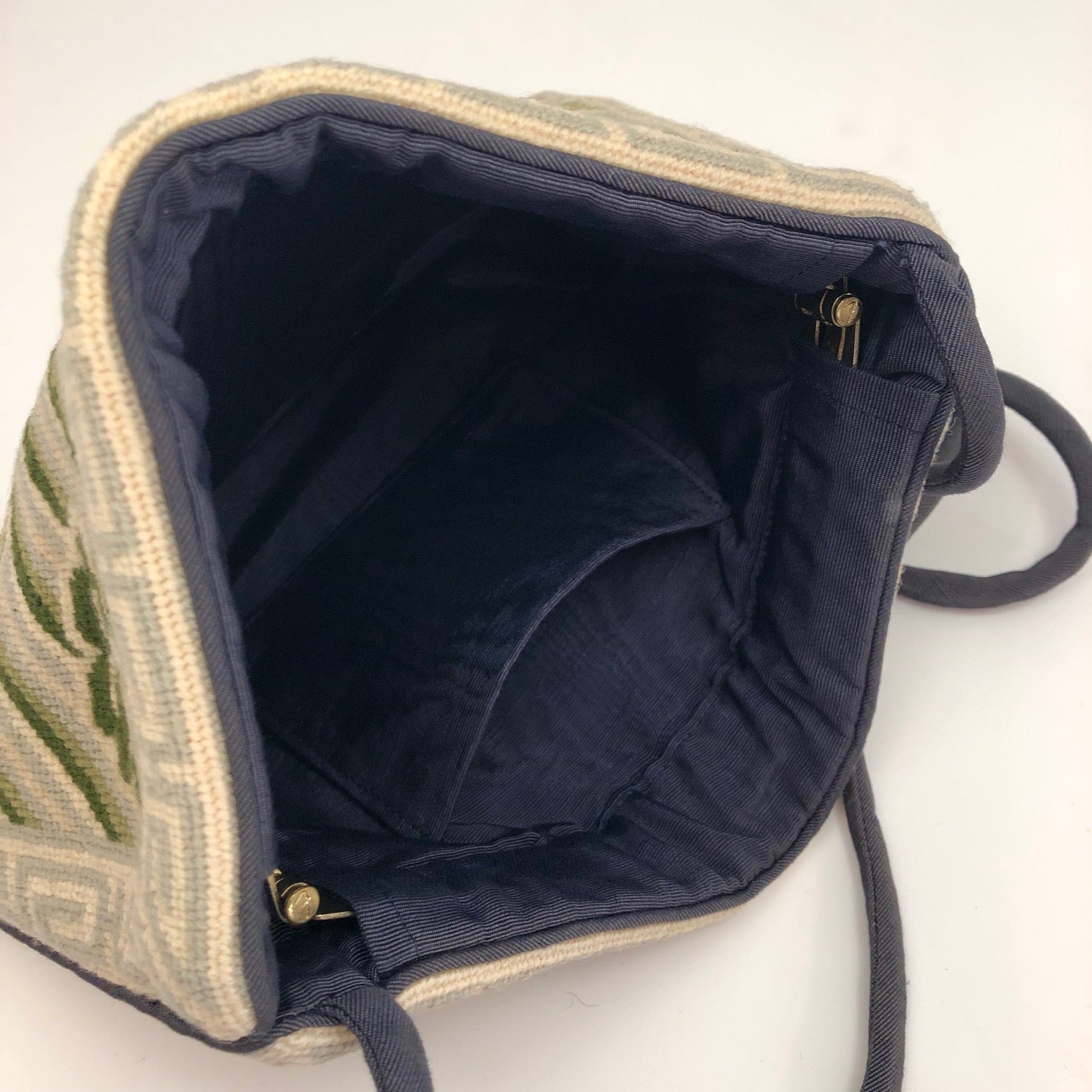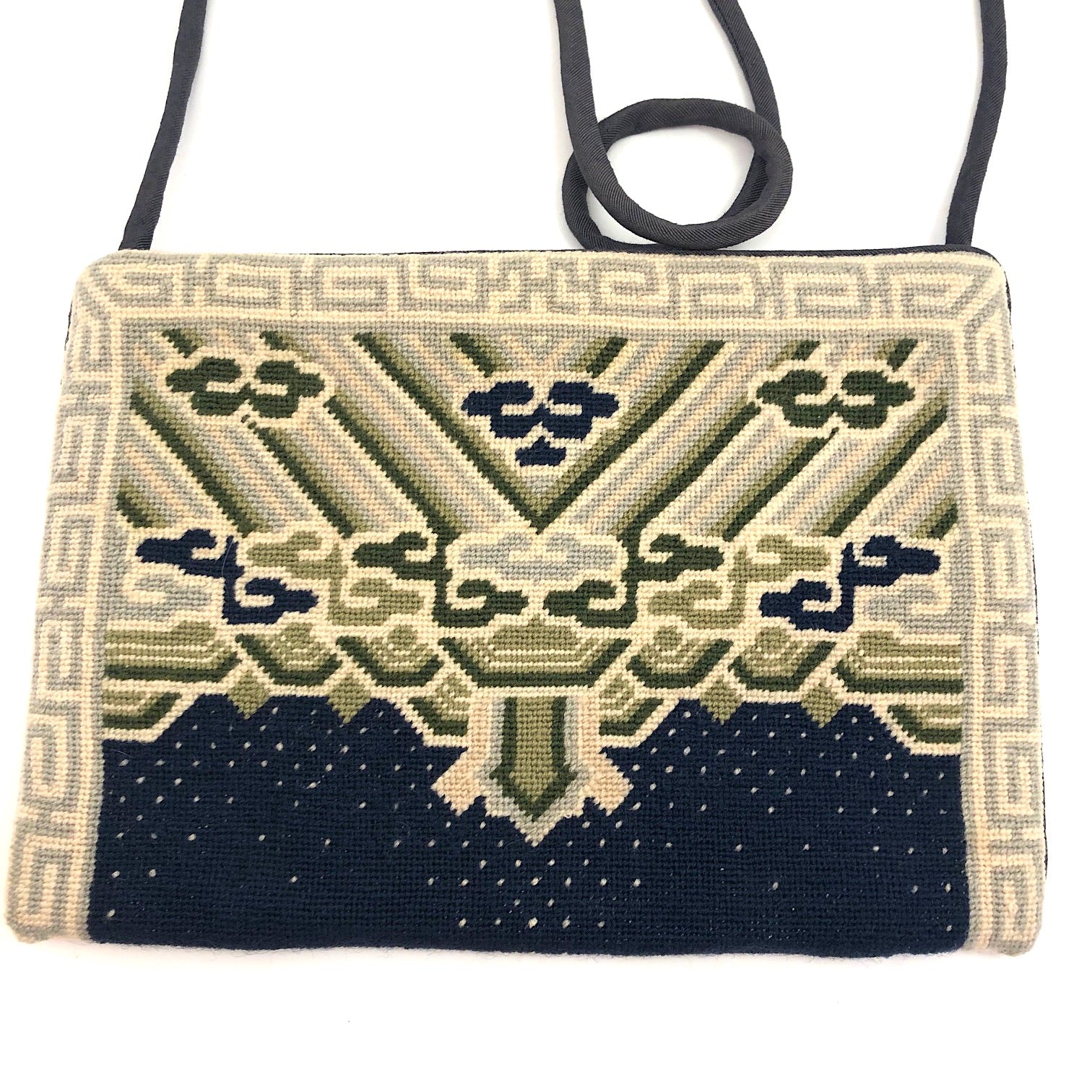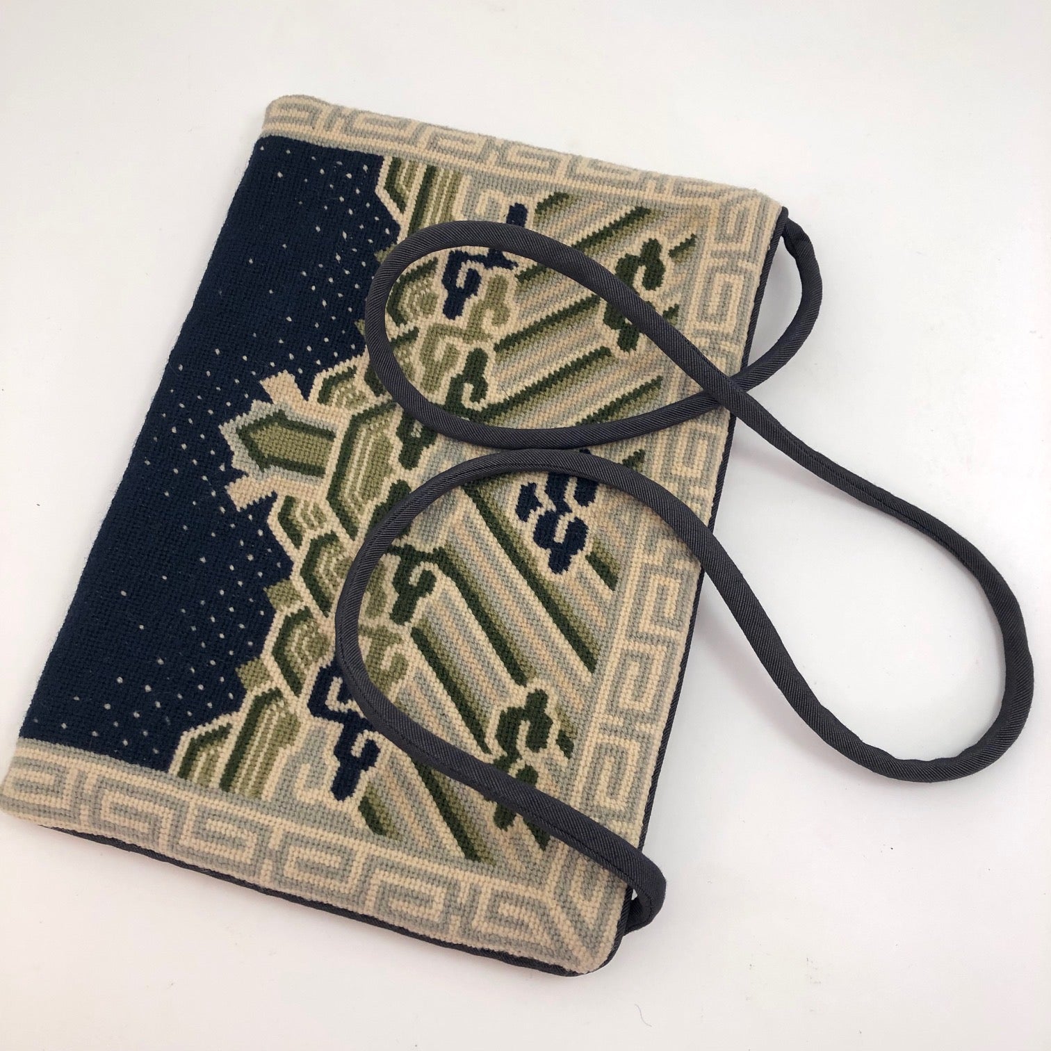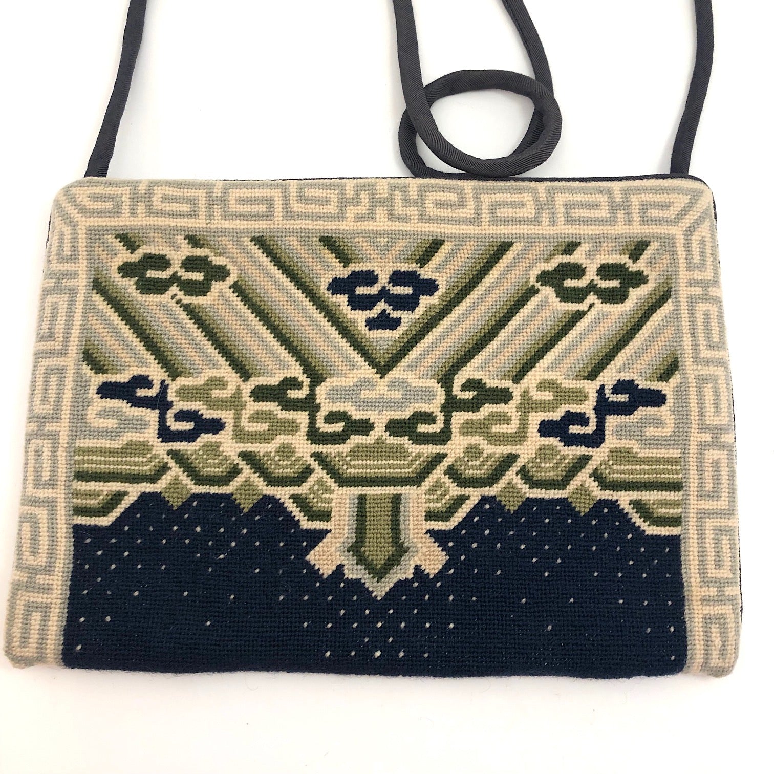 I think this beautifully constructed, vintage needlepoint purse, with an Art Deco sort of a feel, is a wonderful blend of haute and homespun, great for a gala but also with jeans and a t-shirt. I like to think it was made for a special occasion, as part of a head-to-toe ensemble that perhaps also included a perfectly tailored suit, spectator pumps, and a fabulous hat with a feather or two. Whatever the case, I am sure she had a lot of style.