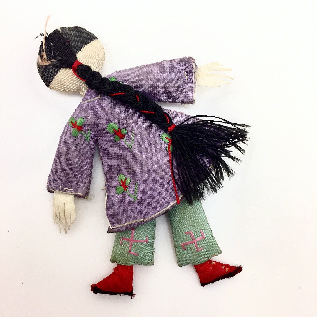Among my very favorite tiny animal in the Critical EYE collection is this wonderful Inuit hand-carved polar bear, which seems at once fierce and friendly; stoic and animated with its outstretched neck and black painted mouth, eyes, ears, and feet. From the back and underside, a darker colored vein or marbilization is visible; this and the color lead me to believe the bear is carved from Walrus tusk.