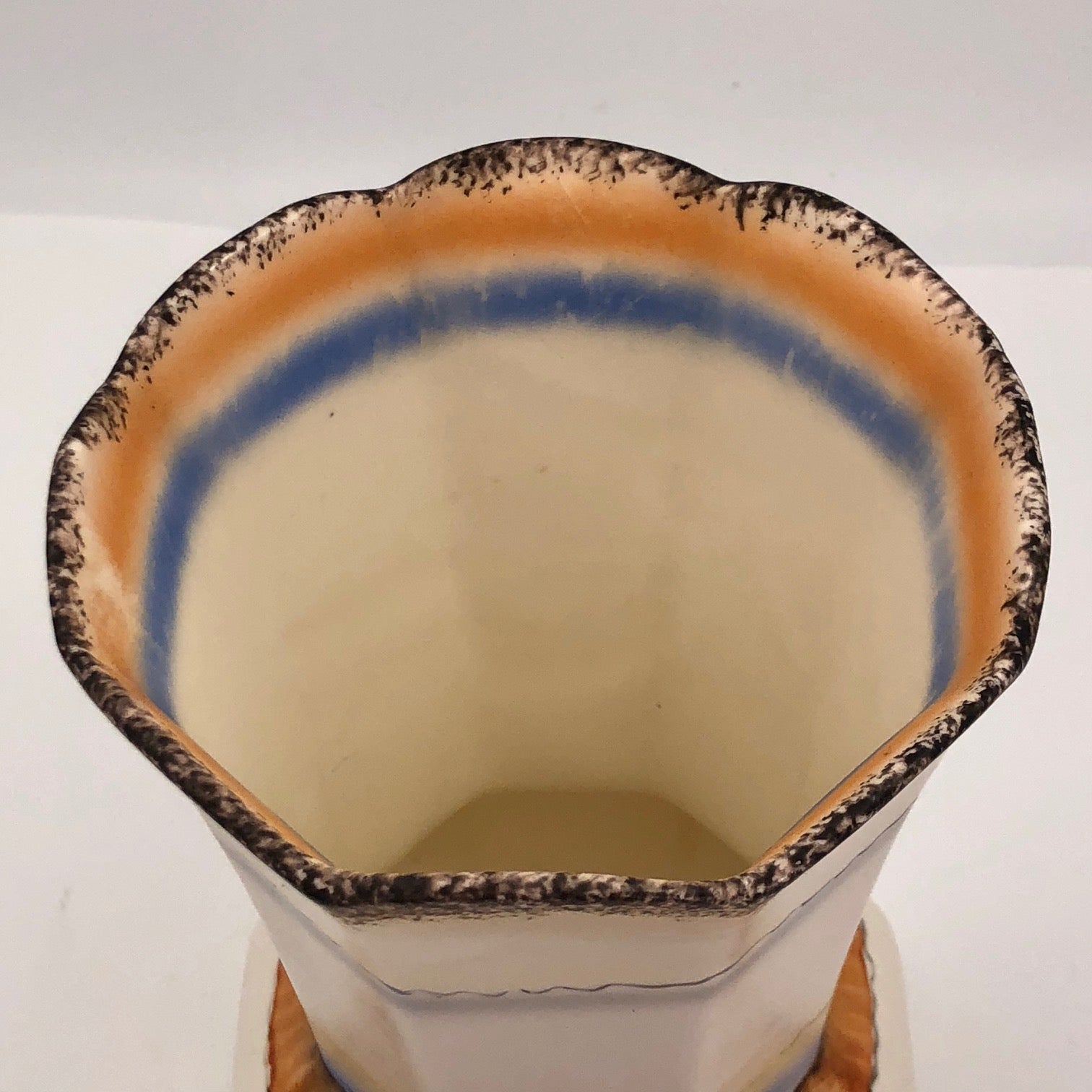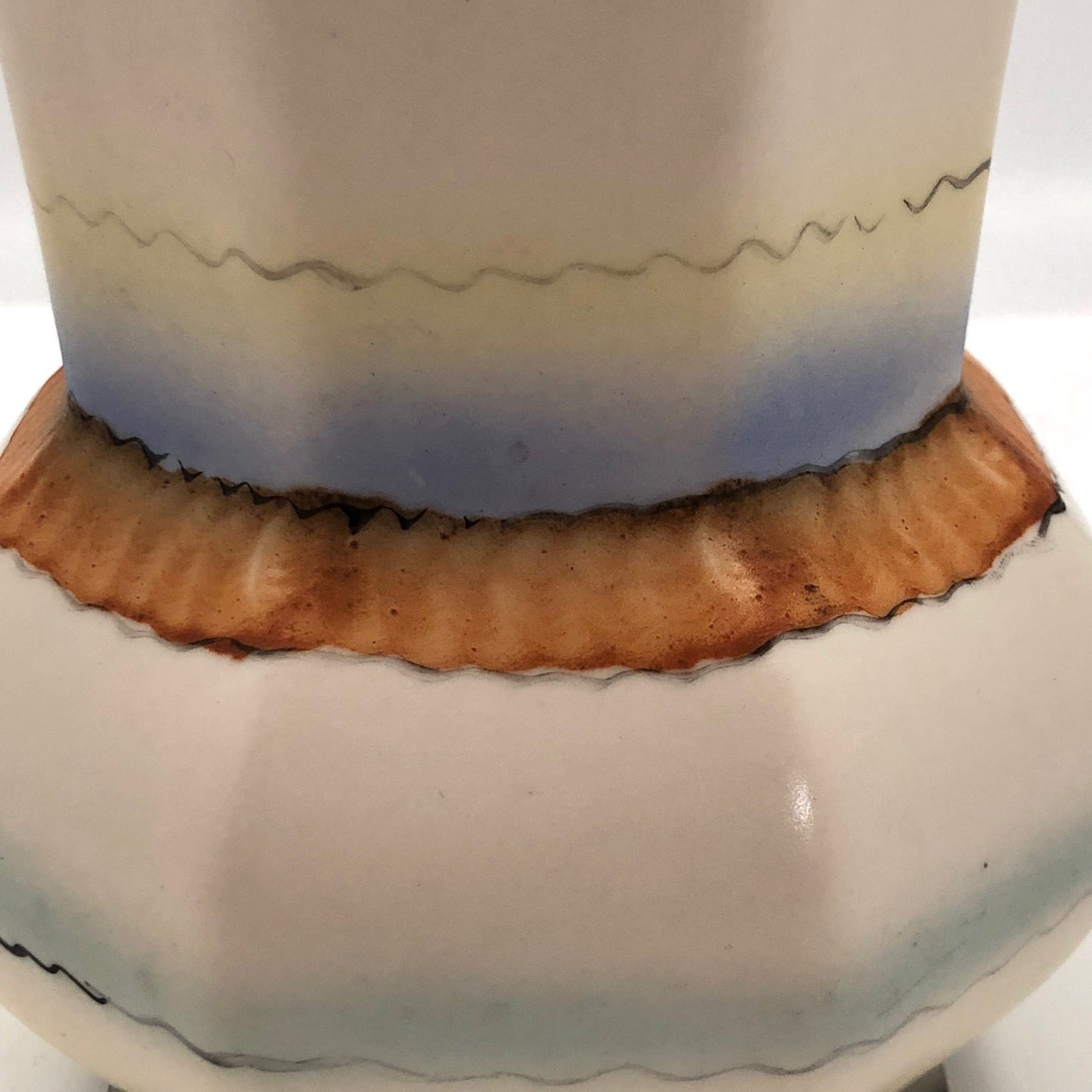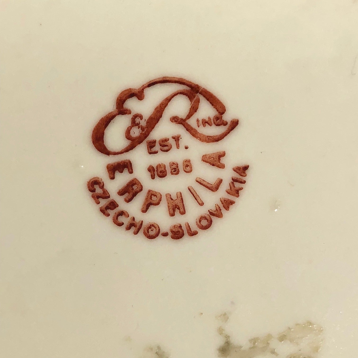 I think this Czechoslovakian Art Deco vase is simply lovely and also compelling—it feels a little bit Asian, a little bit European, and a little bit Southwestern, but also very of the moment in its color palette and hand painted decorative details. Dating from the 1920s-30s, it is marked Erphilia, a mark found on Czech and other pottery and porcelain made after 1920, which was used on items imported by Ebeling & Reuss of Philadelphia—combining the E and R of Ebeling and Reuss with “Philia” of Philadelphia.