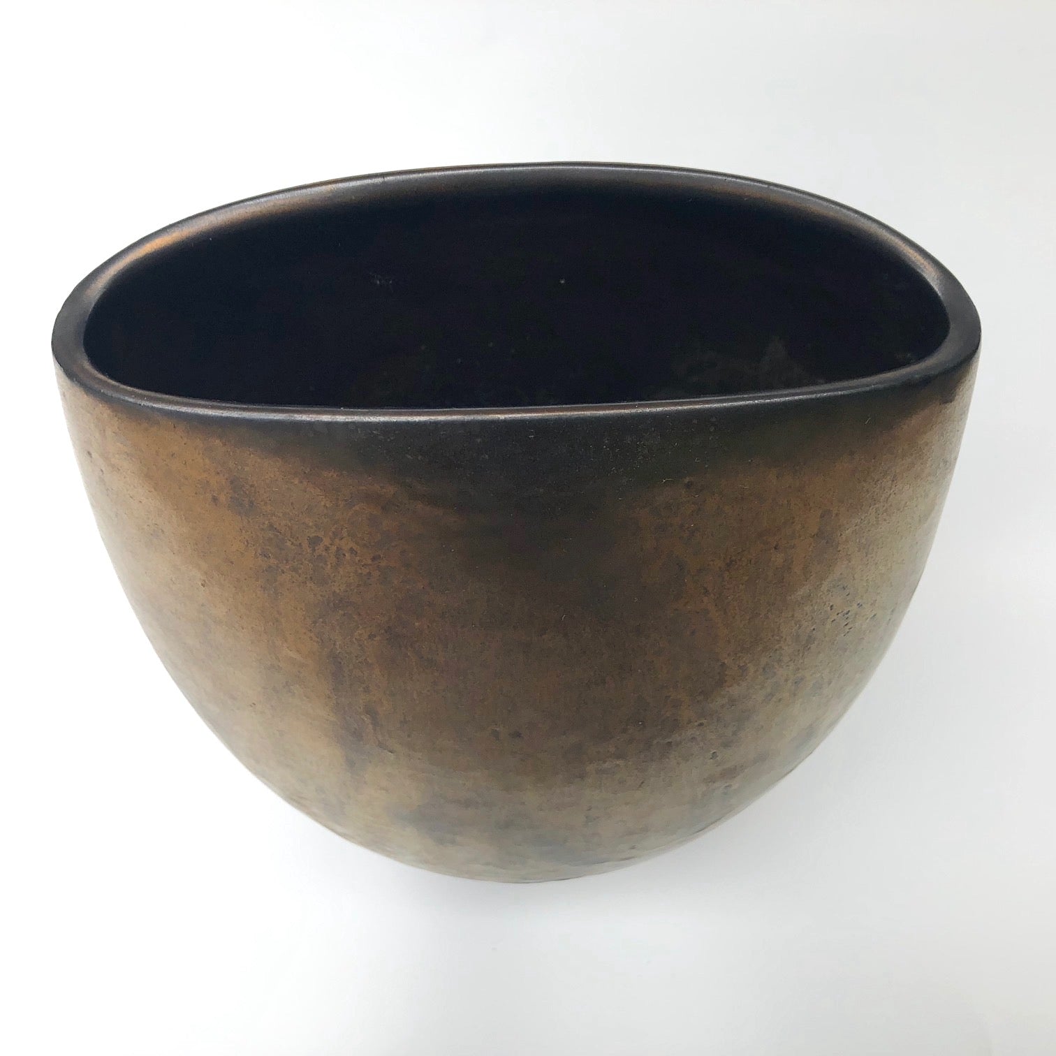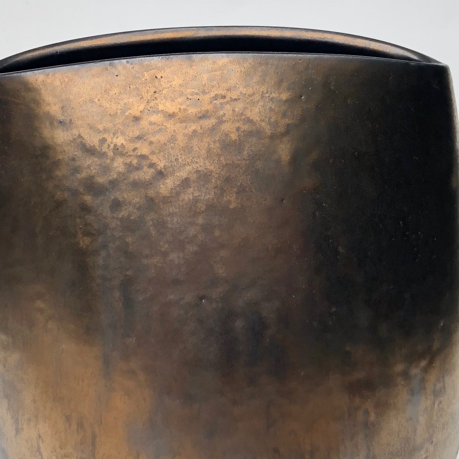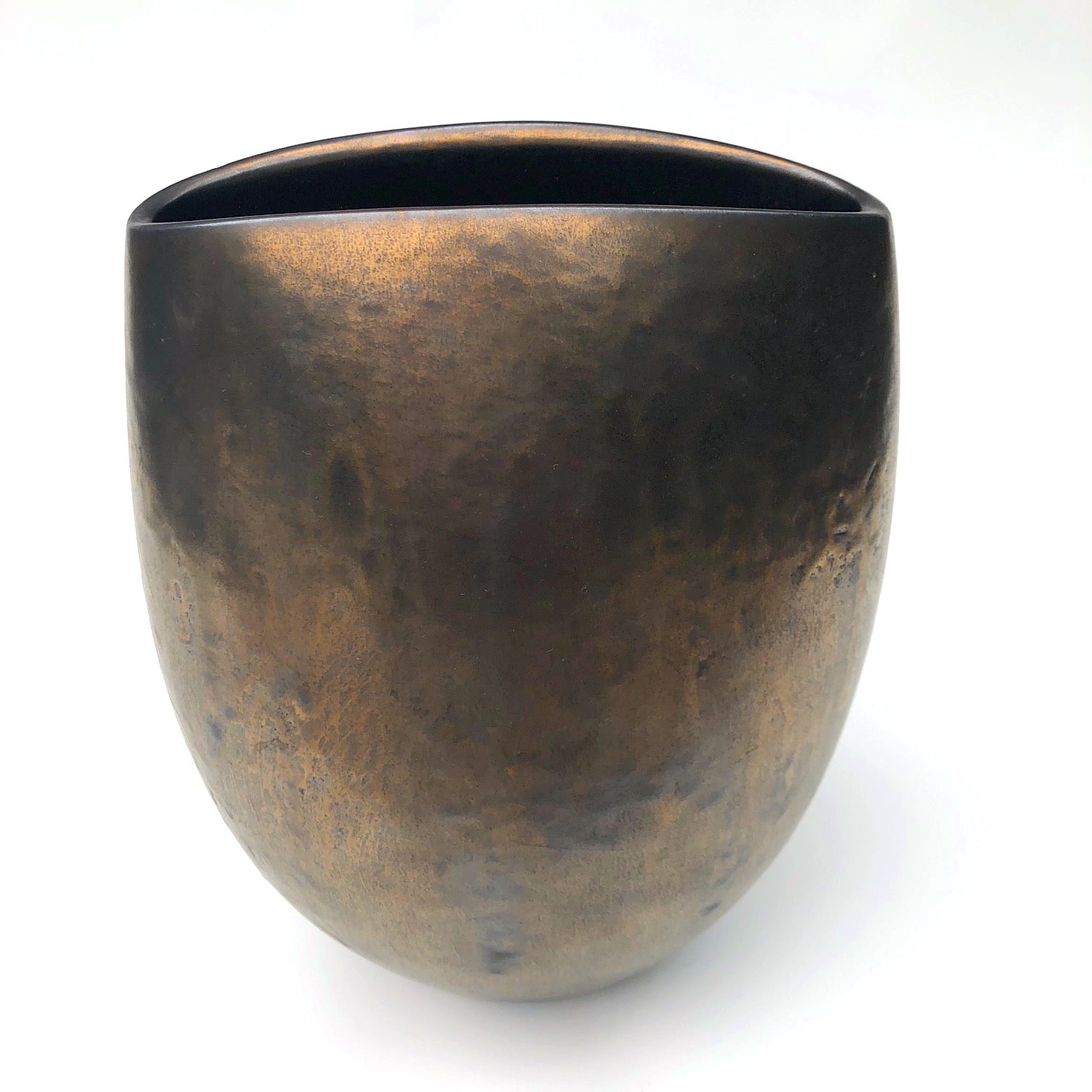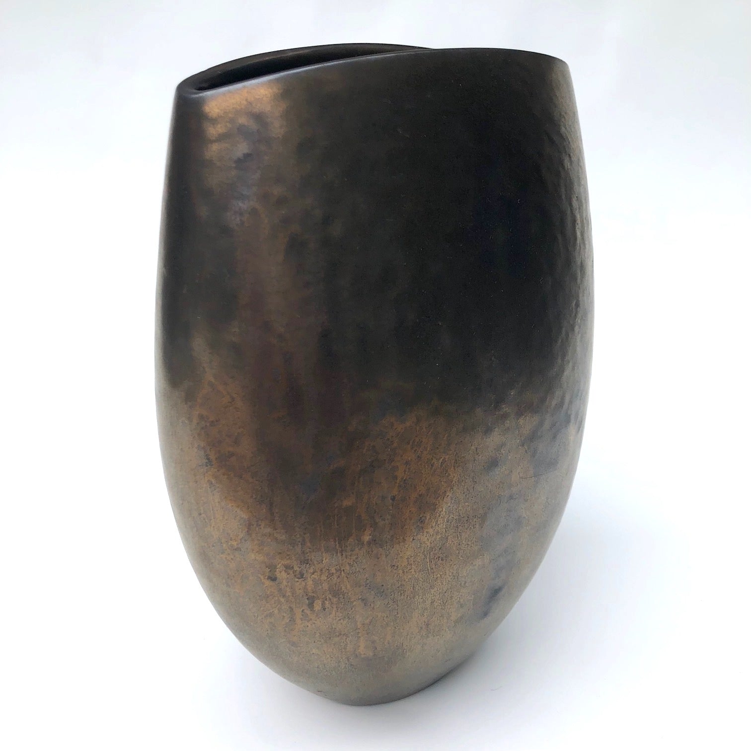 This copper glazed large ceramic vase by Andersen Design Studio of Boothbay, Maine has a lovely variegated copper sheen, great lines, and is gorgeous from any angle. Put it at the center of the table to add instant glamour and elegance to any dinner! It's great with flowers or just on its own, and has a wonderful, substantial sculptural presence.