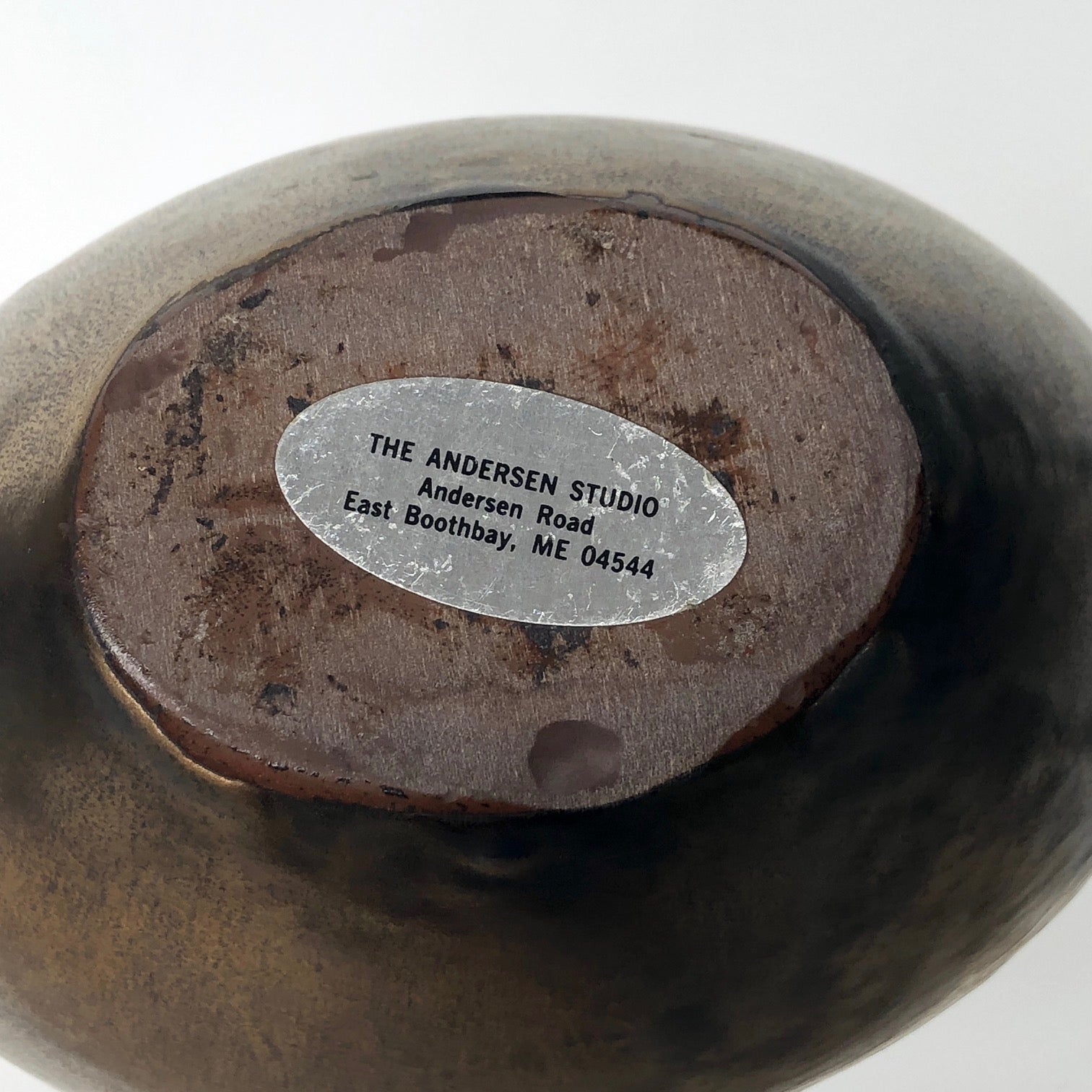 Established in 1952 by Weston and Brenda Andersen and still in operation, The Andersen Studio has a long history as a pioneer ceramic design and slip casting studio producing functional and decorative objects. I believe this vase dates from the 1980s.